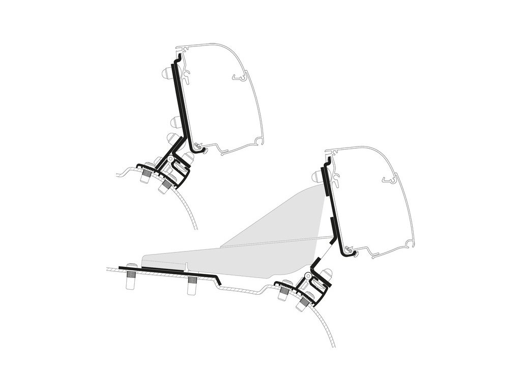 Adaptér pro Thule Omnistor 4200 PSA Minivan G2, délka vozidla 495 cm, 2 adaptéry pro šířku markýzy 260 cm.