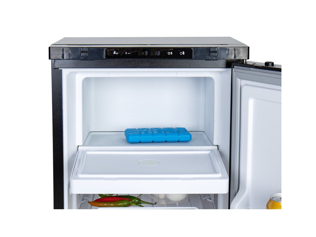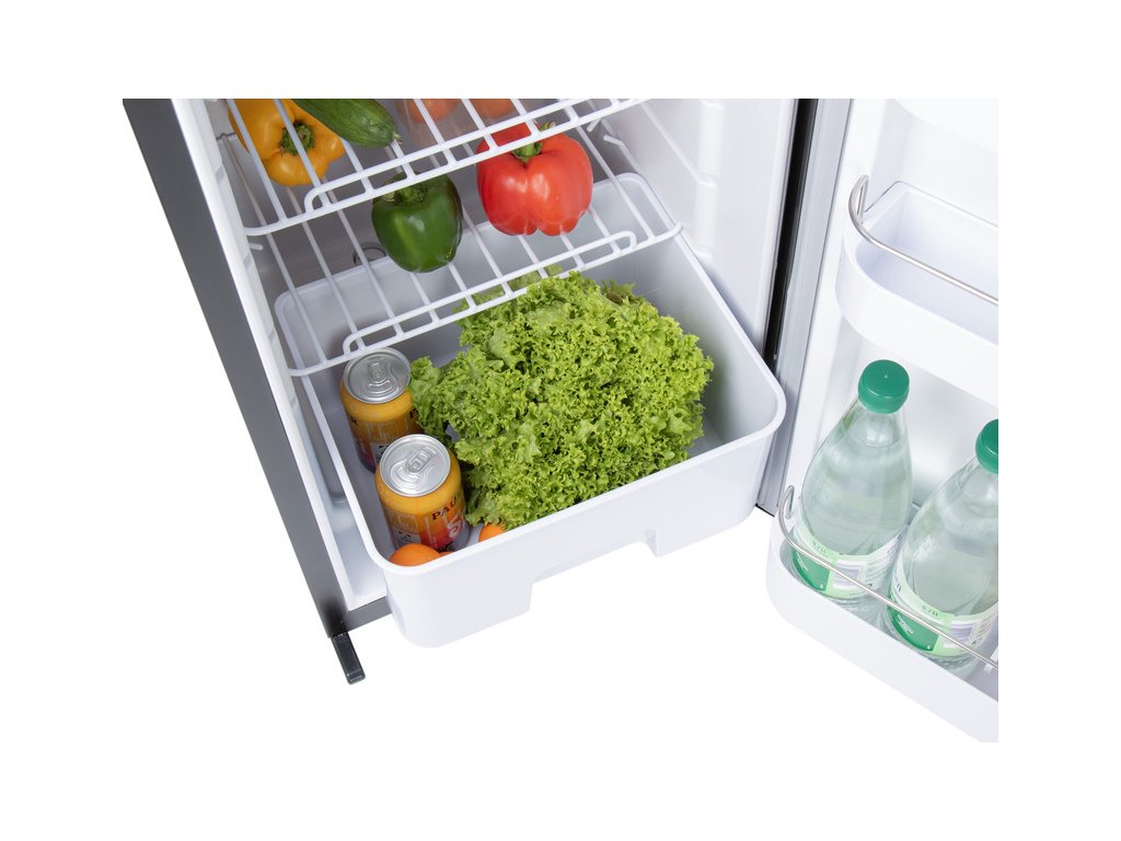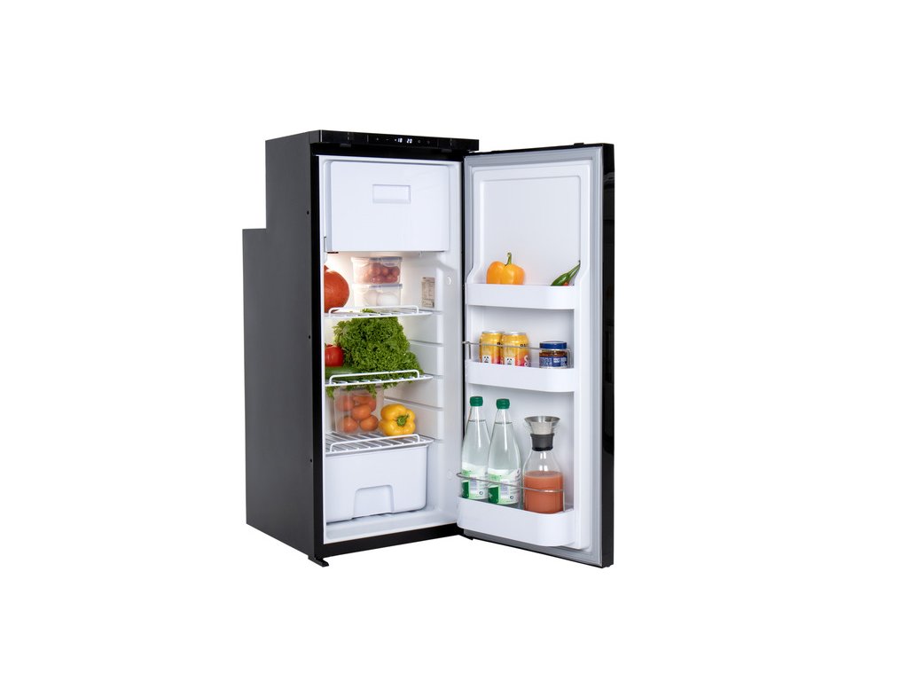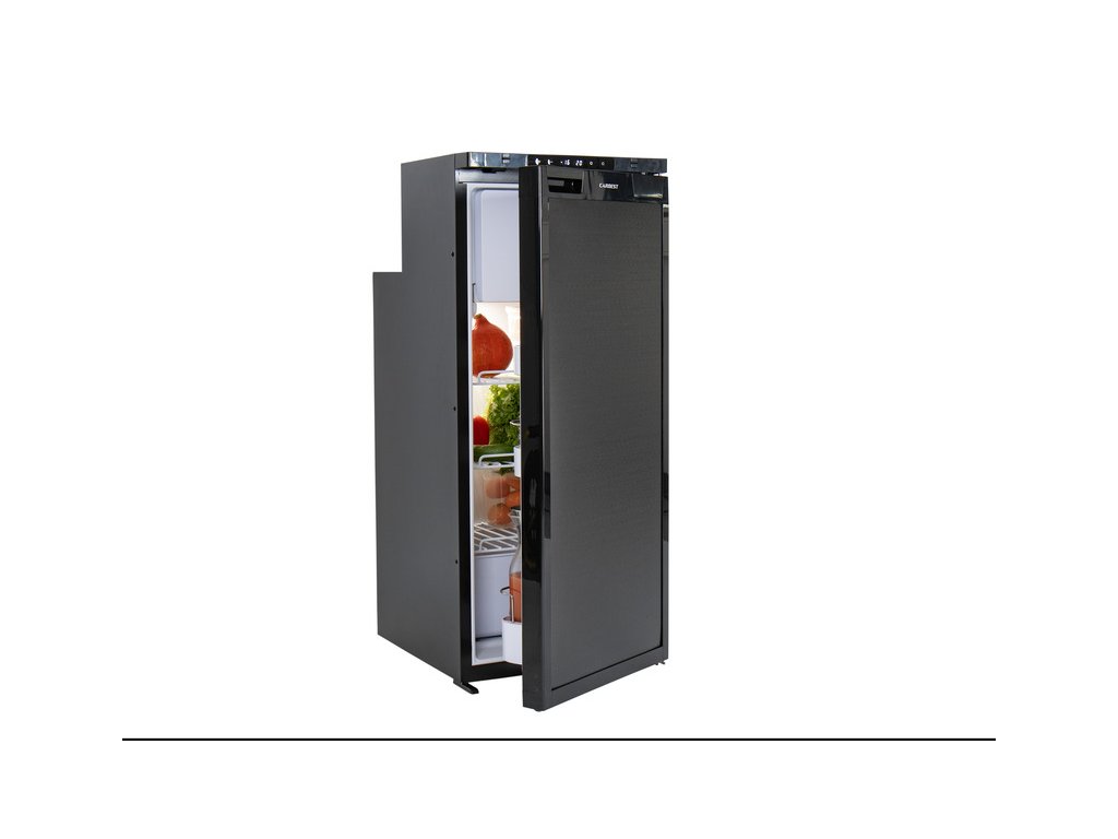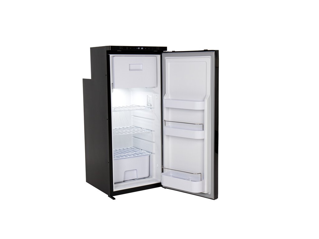 Štíhlá lednice LR90L se vyznačuje černým kartáčovaným předním designem a je vybavena kompresorem LG. S celkovou kapacitou 91,4 litru (82 litrů chladnička / 9,4 litru mraznička) je tato lednice ideální pro delší cesty. Dveře lze otevírat vlevo nebo vpravo.