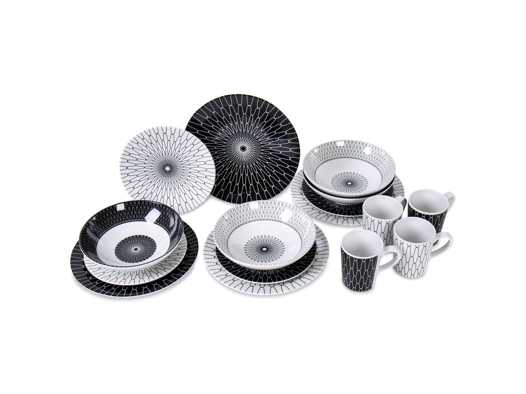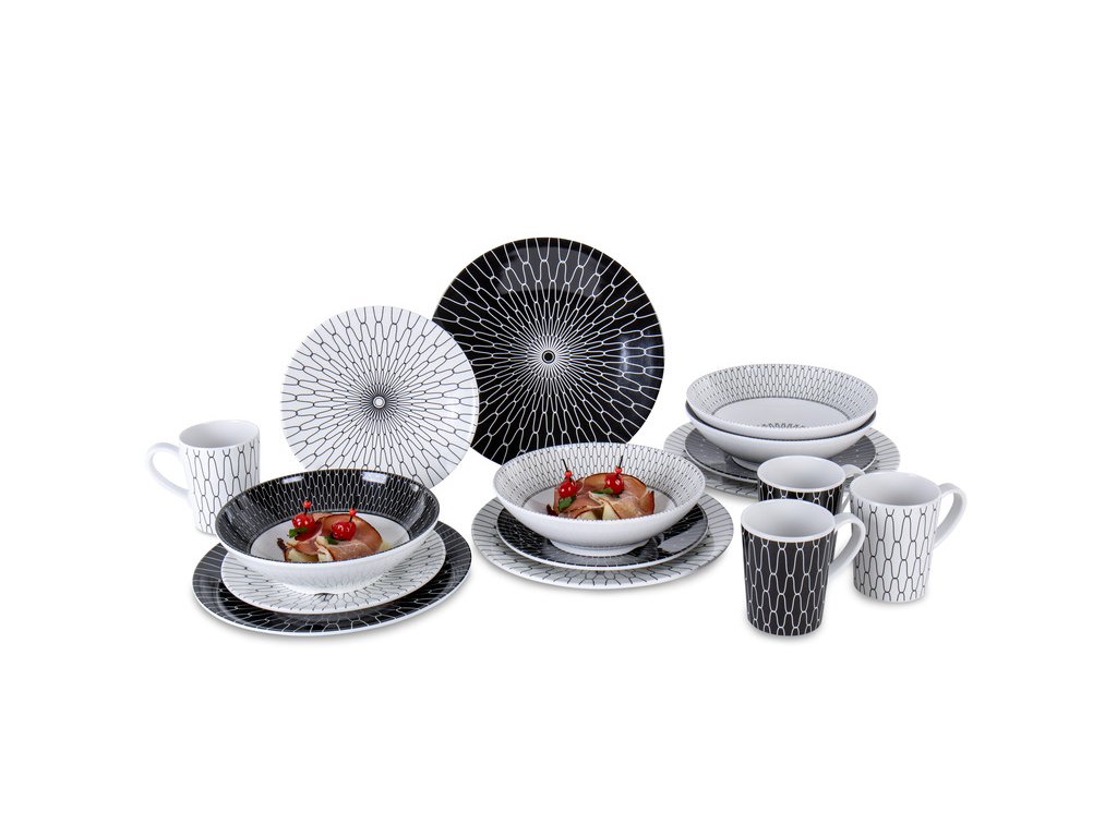 Melaminová sada nádobí Black-White pro 4 osoby - Premium