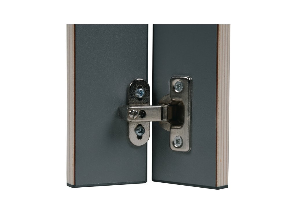 Úhel otevření je 90°. S hloubkou 12 mm je vhodný pro tenké dvířka skříněk .