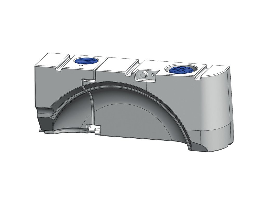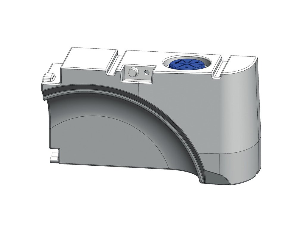 Nádrž na vodu vhodná pro vozidlo VW T5 / T6 s umístěním na zadní levý podběh vozidla.
