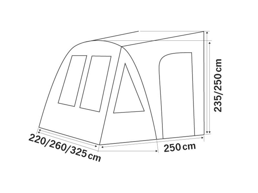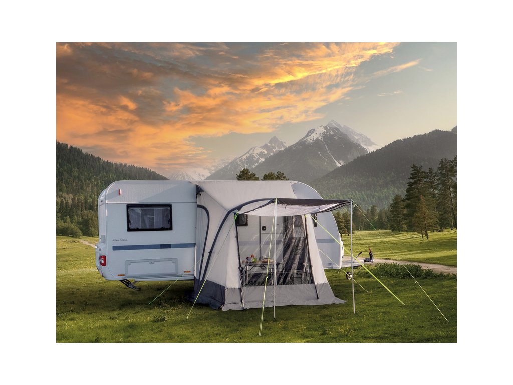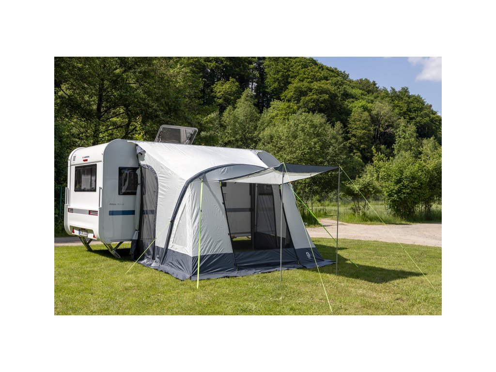 Nafukovací markýza do karavanu je k dispozici ve 3 šířkách s jednou vzduchovou trubicí pro rychlé a snadné sestavení a složení.