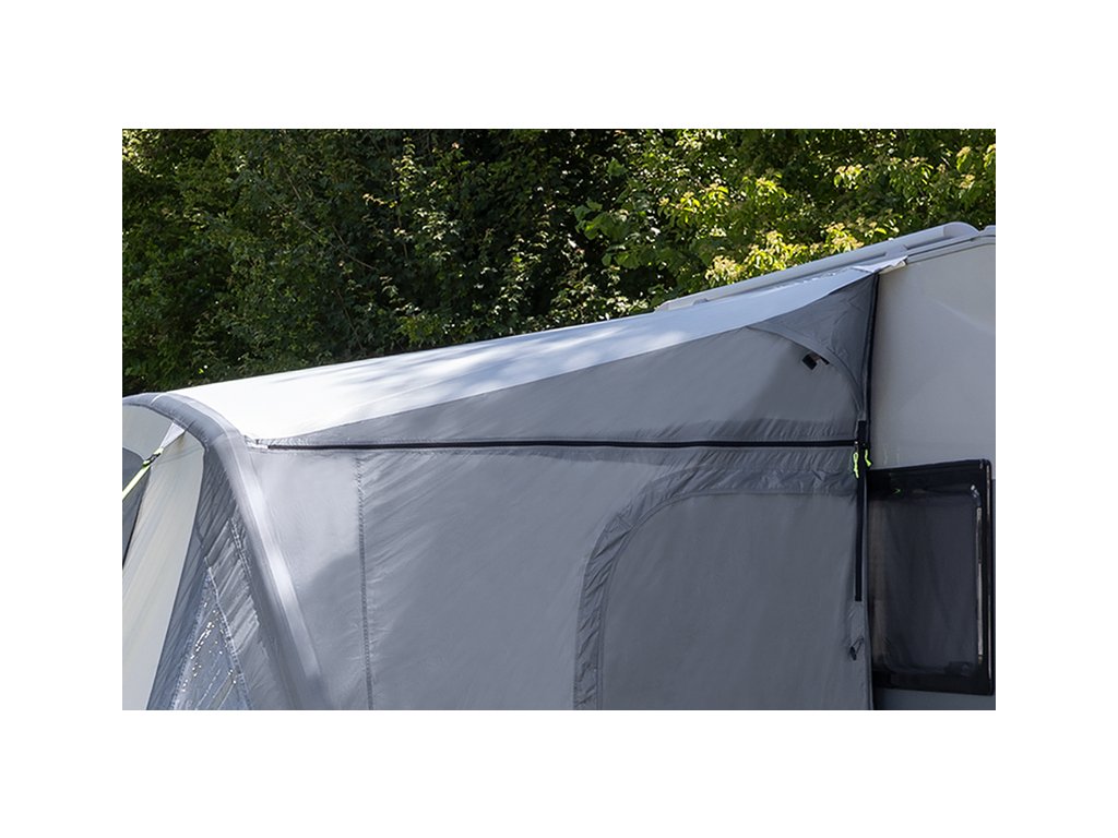Boční panely se zipy a látkovými vložkami umožňují variabilní instalační výšku 230–280 cm pro karavany a obytné vozy a zabraňují mačkání. Široké dveře pro pohodlné nastupování a vystupování (boční: 90 cm / přední: 145 cm).