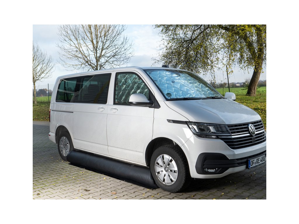 Jednoduše umístěte nafukovací větrnou clonu pod auto a nafoukněte . Nafukovací větrnou clona je dodáváno s pěti integrovanými oky pro upevnění.