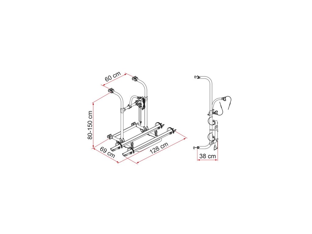 Nosič kol Fiamma Carry-Bike Pro se instaluje na zadní stěnu obytného vozu. Je vhodný pro obytné vozy bez okna v zadní stěně. Montážní držáky nosiče se připevňují přišroubováním. Teleskopické svislé trubky rámu nosiče umožňují nastavení vertikální rozteče připojovacích prvků v rozsahu 80 až 150 cm, což při montáži nosiče poskytuje velkou variabilitu.