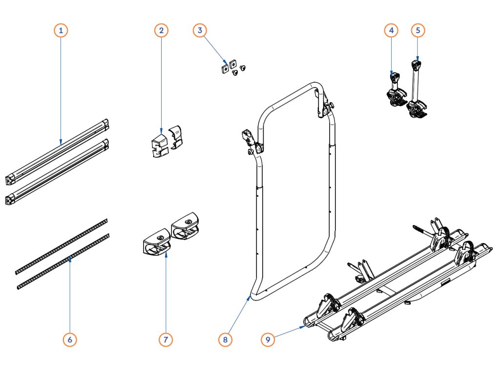 Nosný rám kompletní pro nosič kol Thule Elite Van XT, barva stříbrná.