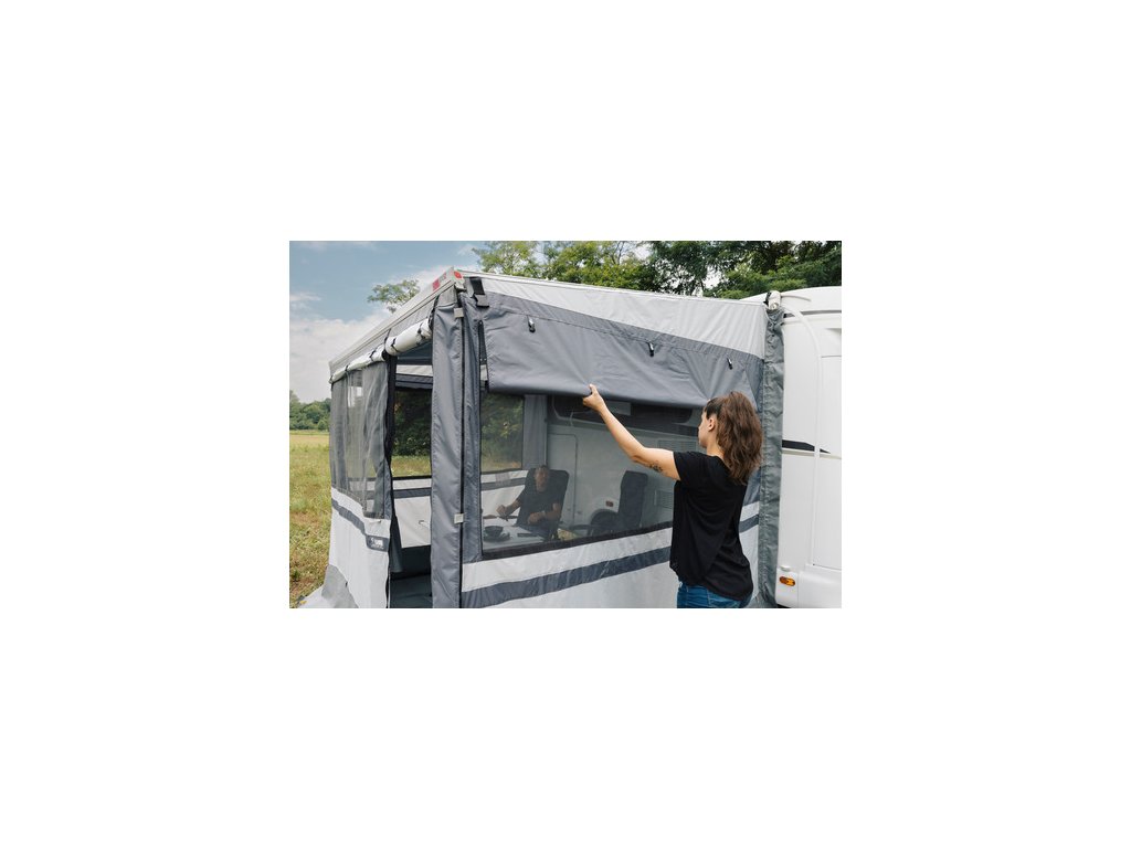- Boční okna se zatemňovacími žaluziemi a moskytiérami
