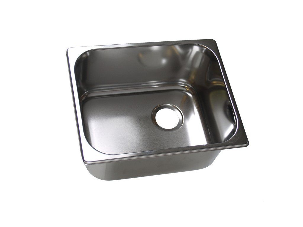 Čtvercový nerezový dřez s odtokem typu E (odtoková armatura se prodává samostatně, např. číslo položky 705065).