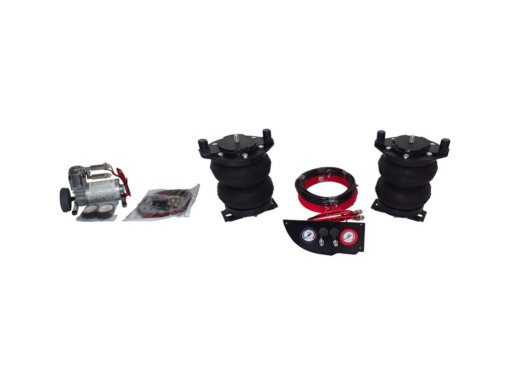- Rozsah dodávky: Přídavné pružiny vlevo a vpravo s připojením specifickým pro vozidlo, specifický ovládací prvek s bezpečnostními ventily, 2 tlakoměry a spínače, sada kompresoru 12V, trubky Rilsan, malá sada hardwaru pro montáž, konkrétní a podrobný montážní návod s ilustracemi pro každý krok.